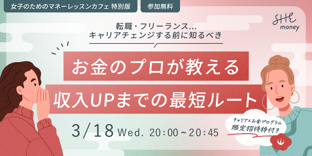 今年ホンキでキャリアを変えたい!!けど ✓お金の不安があって一歩踏み出せないでいる ✓収入の不安や生活費を稼げるかなど不安がある ✓転職・フリーランスになるうえでお金の心配がある ✓キャリア×マネープランを引いて安心のキャリアチェンジを目指したい人