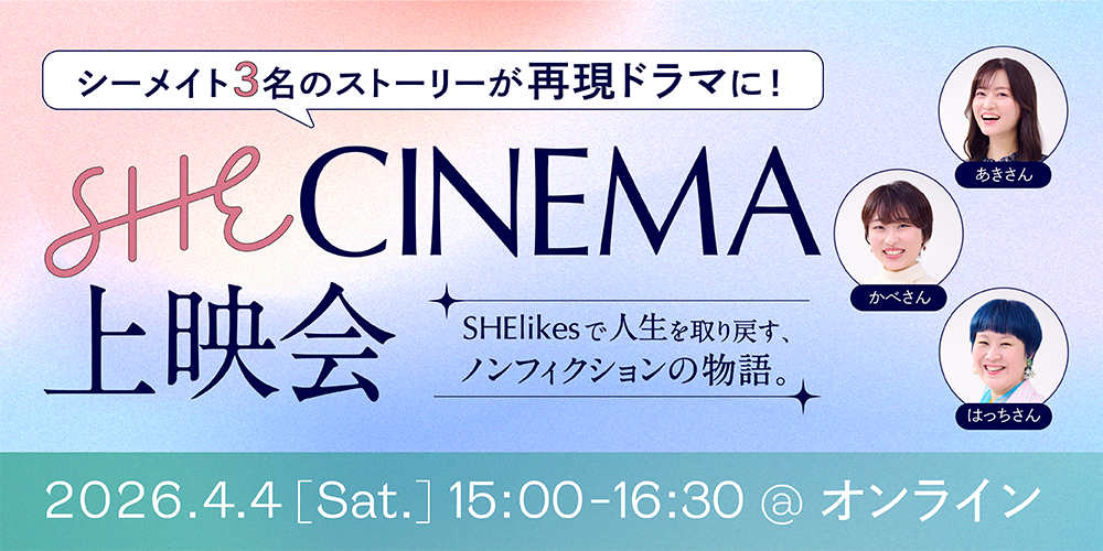 CM公開を記念して「SHE CINEMA 上映会-SHElikesで人生を取り戻す、ノンフィクションの物語。」の開催が決定しました!