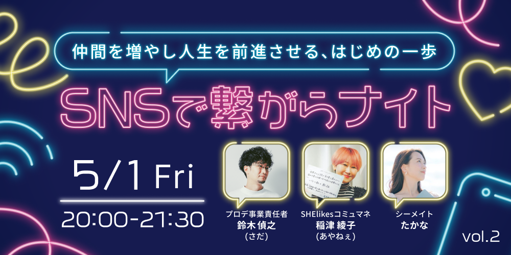 SHE株式会社コミュニティチーム所属コミュニティマネージャー。 40歳という節目の年とコロナ禍が重なったことを機に、それまで従事していたアパレル販売員としてのキャリアに疑問を感じ1年間のキャリアブレイク期間を設けることを決意。 キャリアブレイク中にSHElikesを知り2022年2月に入会。 入会後はSHE朝活コミュニティのコミュニティプランナーを経験。 活動中に得た経験を活かし、2023年1月にSHE株式会社にジョイン。